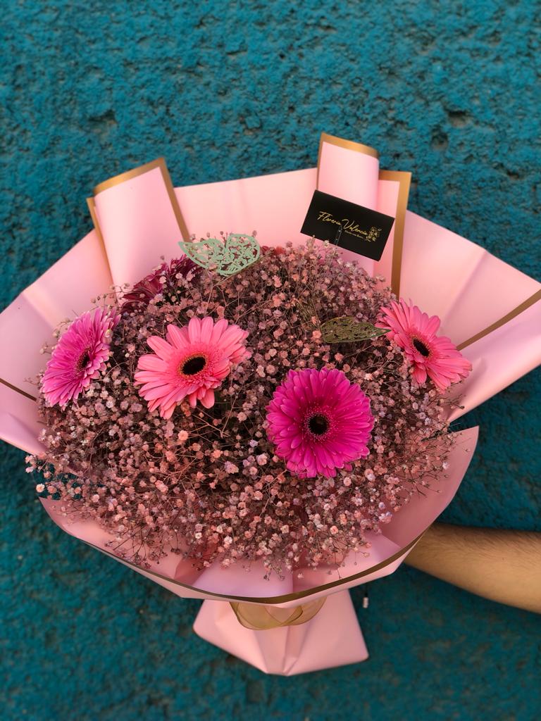 Gerberas gypshophila y mariposas